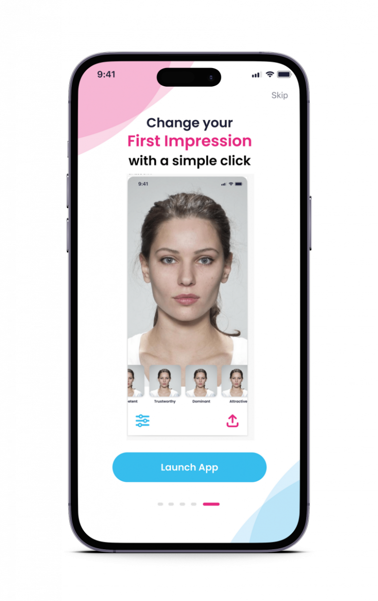 Within Milliseconds of seeing a face, humans make subconscious judgment about each other. We use machine learning, trained by over one million human impressions to quantify this phenomenon, and can make small adjustments to faces that trigger a different first impression